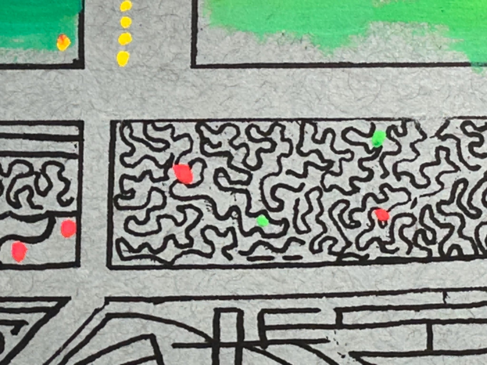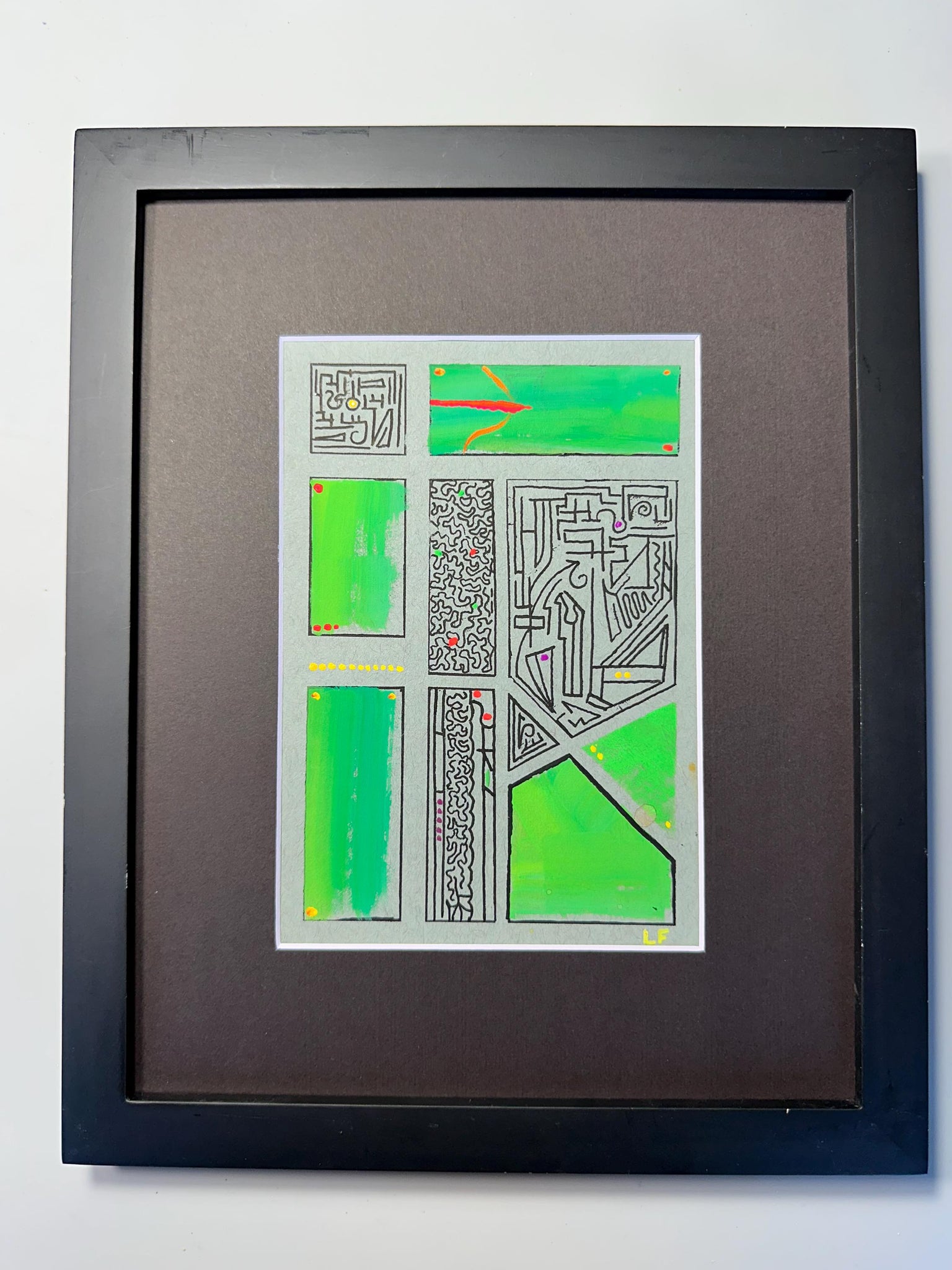 Original abstract painting. Gouache on mixed media paper. White or black wood frame can be included. Size including the frame is 9x12 inches. Image size is 4 x 6 inches.