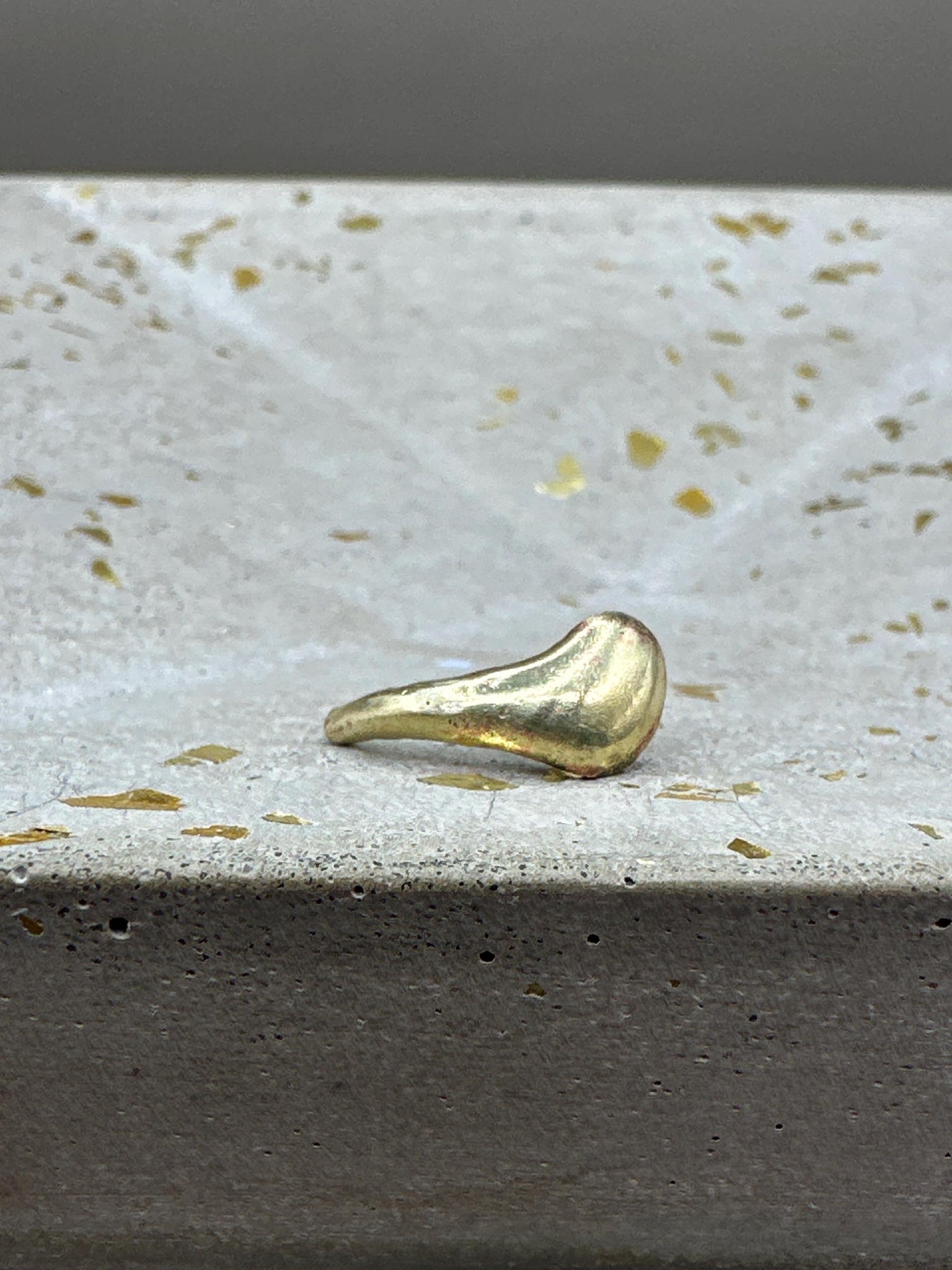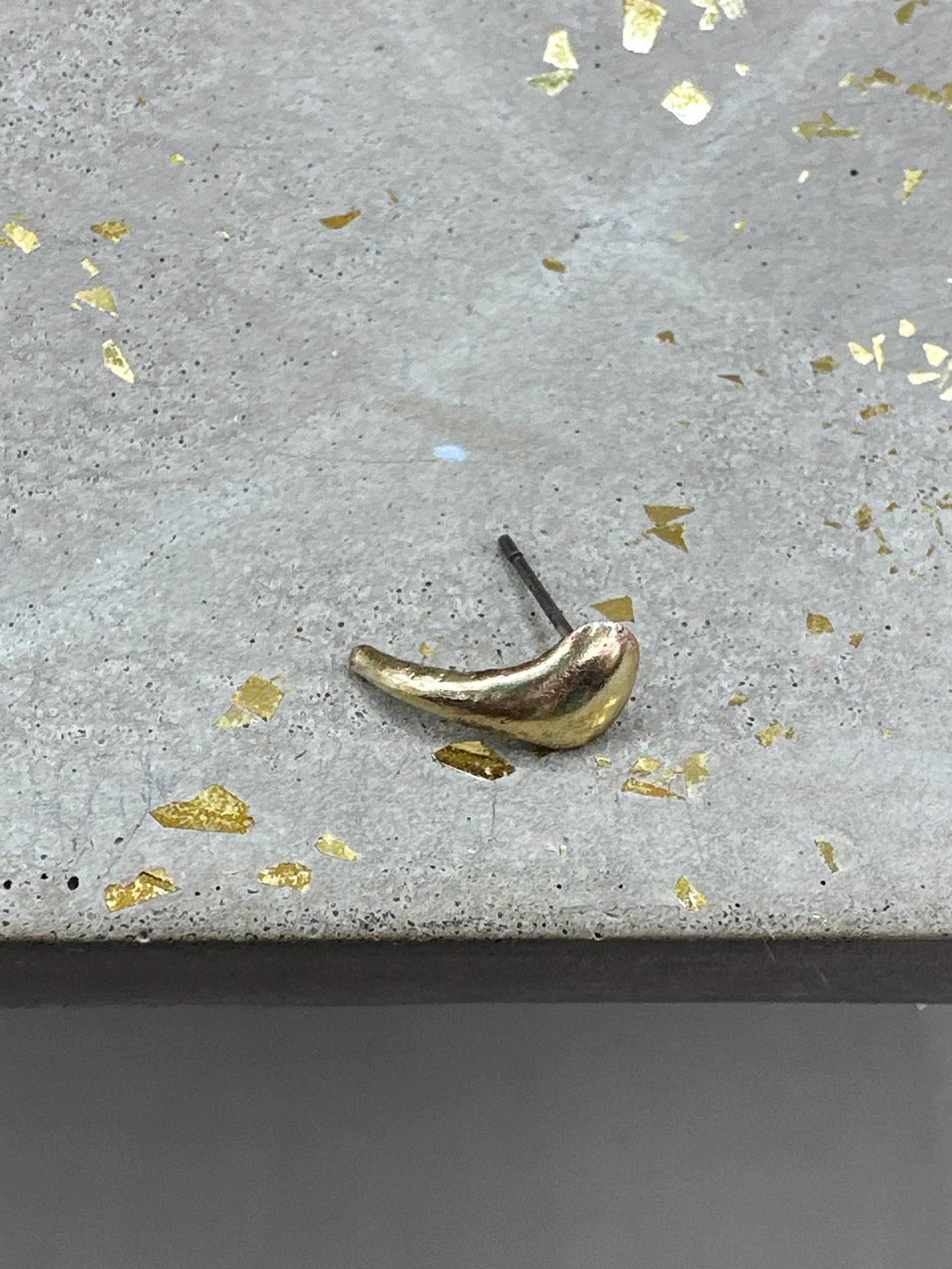 One solid yellow brass stud earring. Free form cast shape. Silver post. Each earring is hand cast and unique. You will get this exact earring.