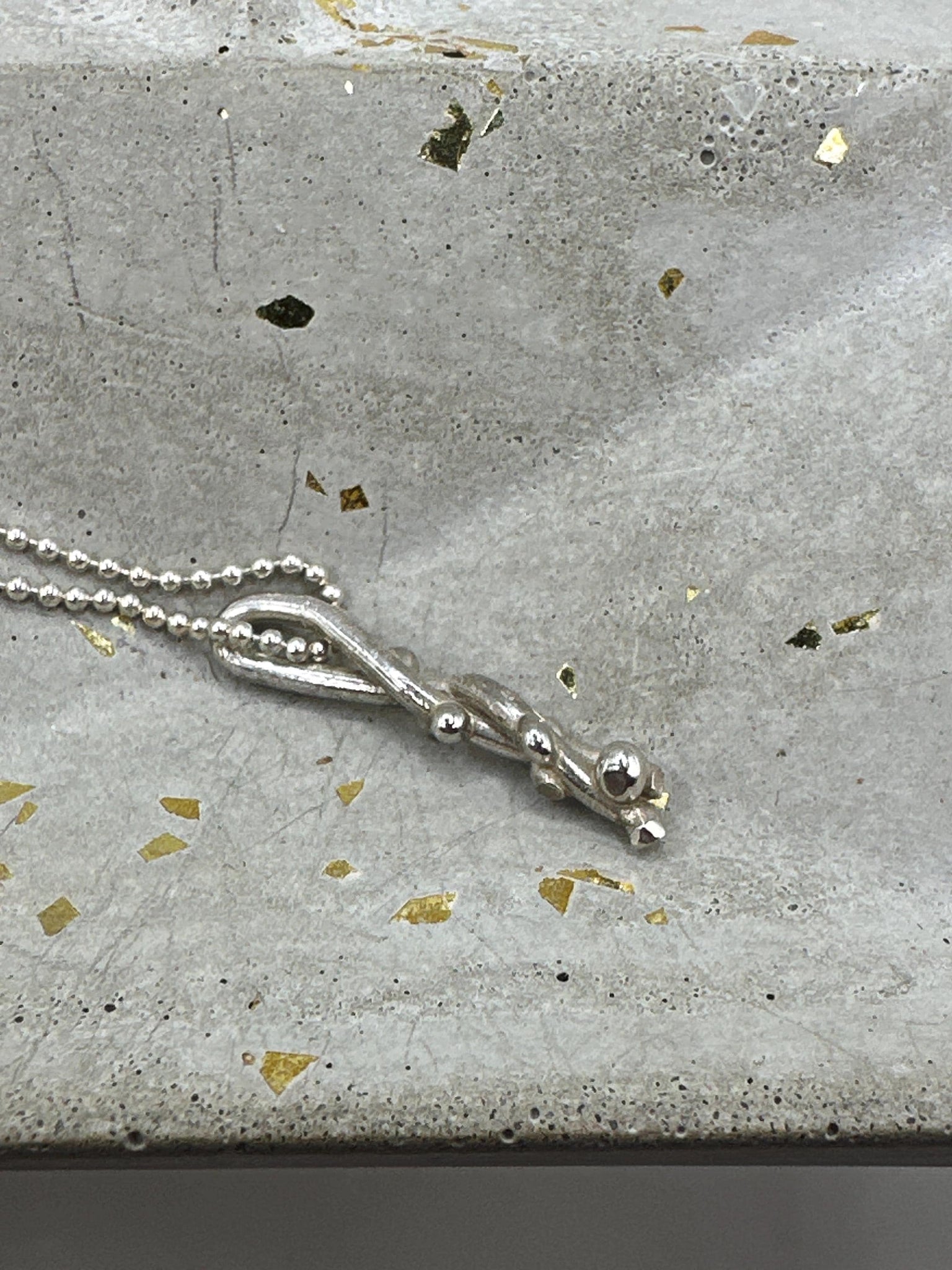 Silver pendant necklace on a silver ball chain. The pendant was created by lost wax casting from a hand made wax design. One of a kind.
