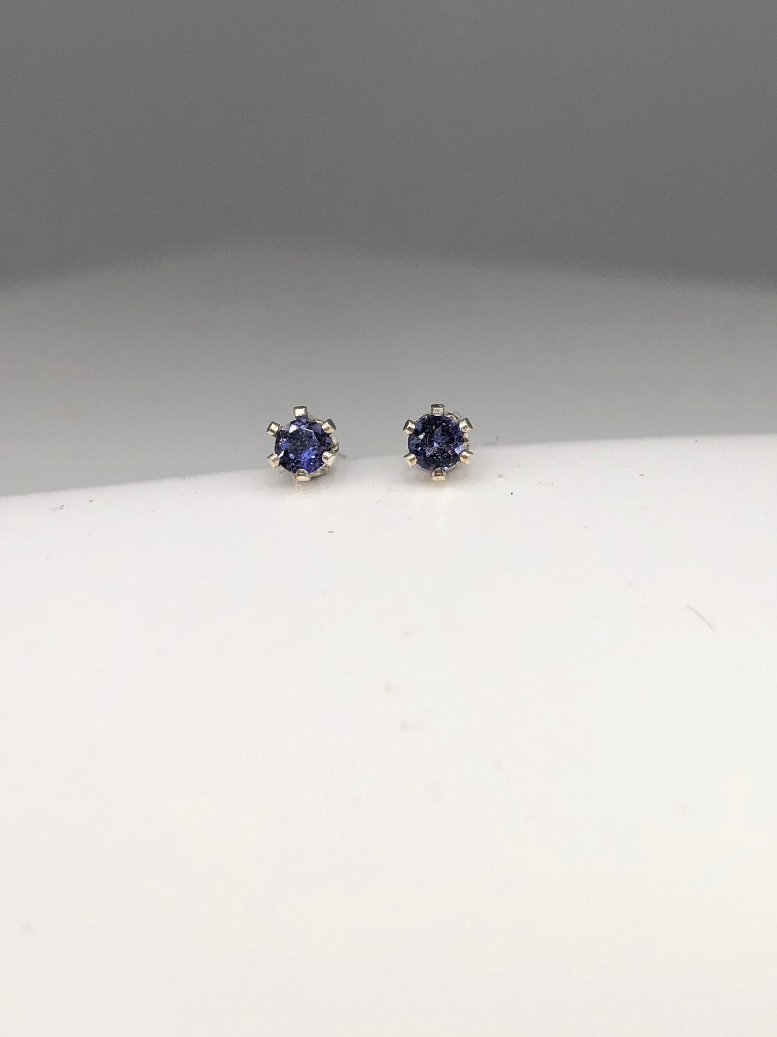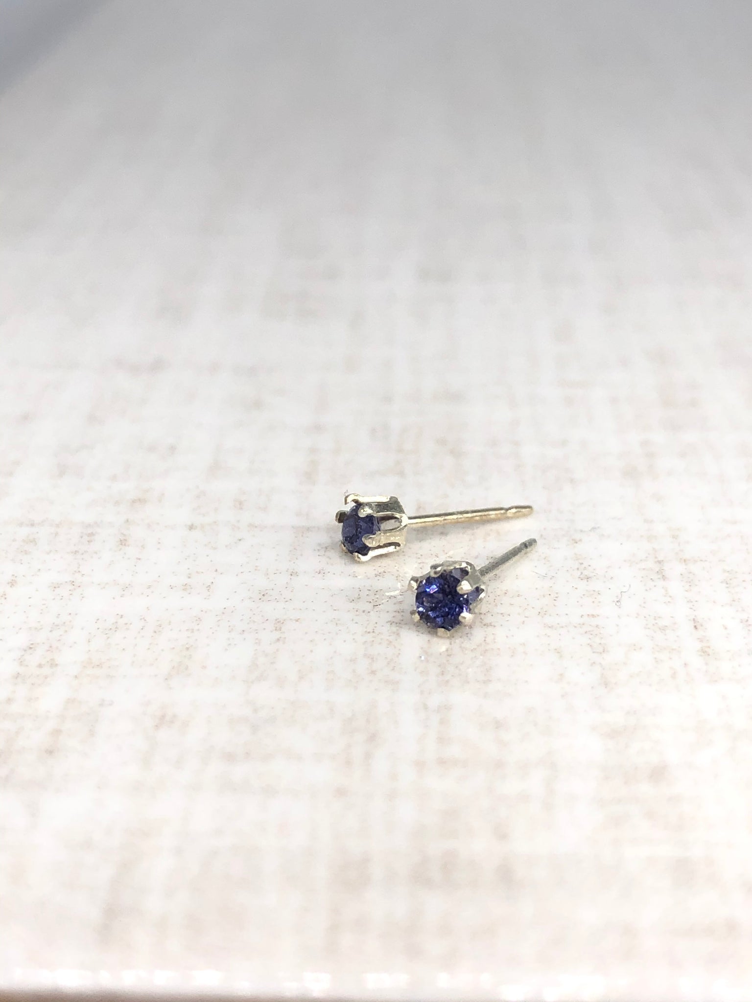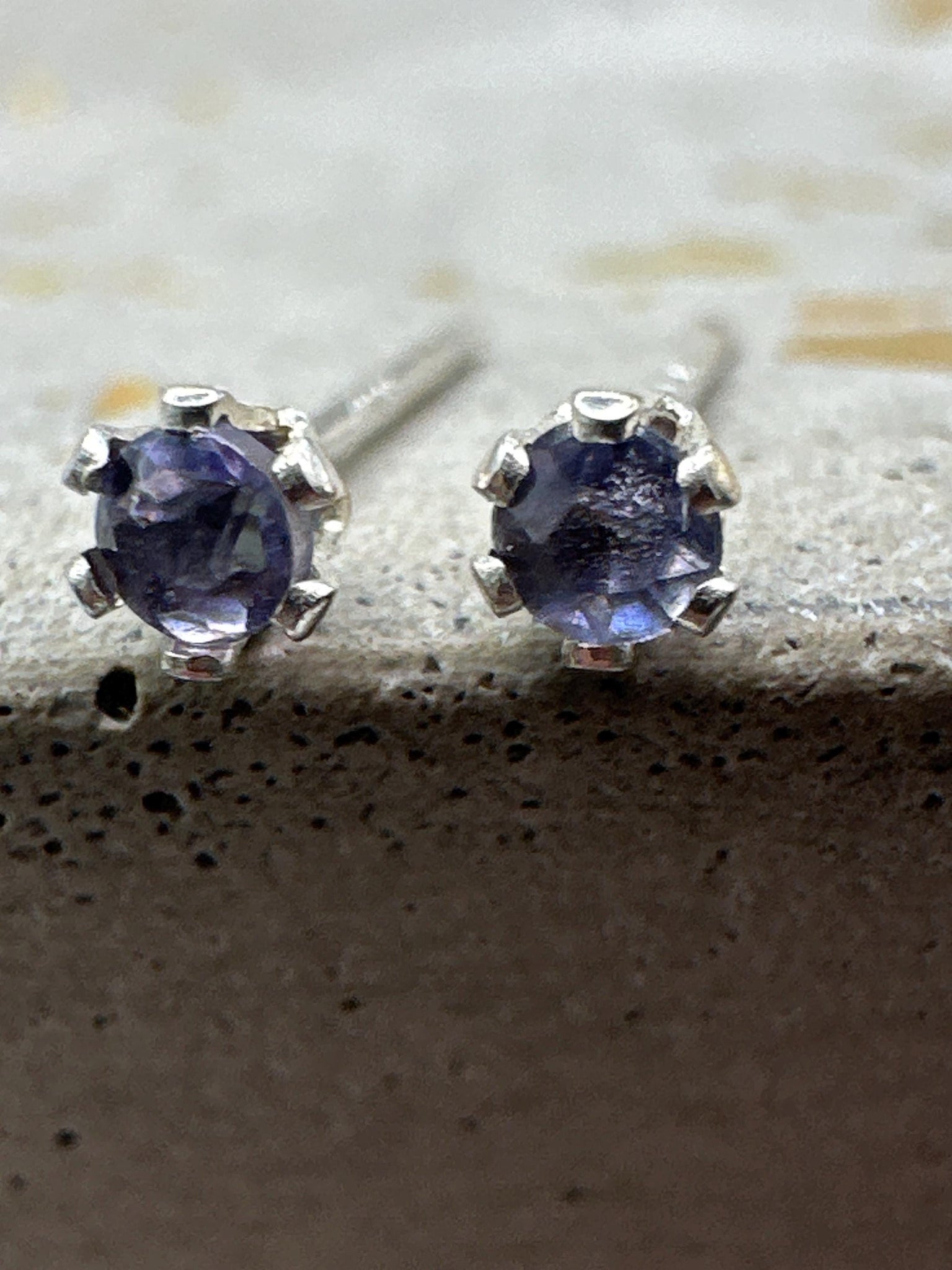 Iolite stud earrings with silver posts. Stones are 2mm in diameter.