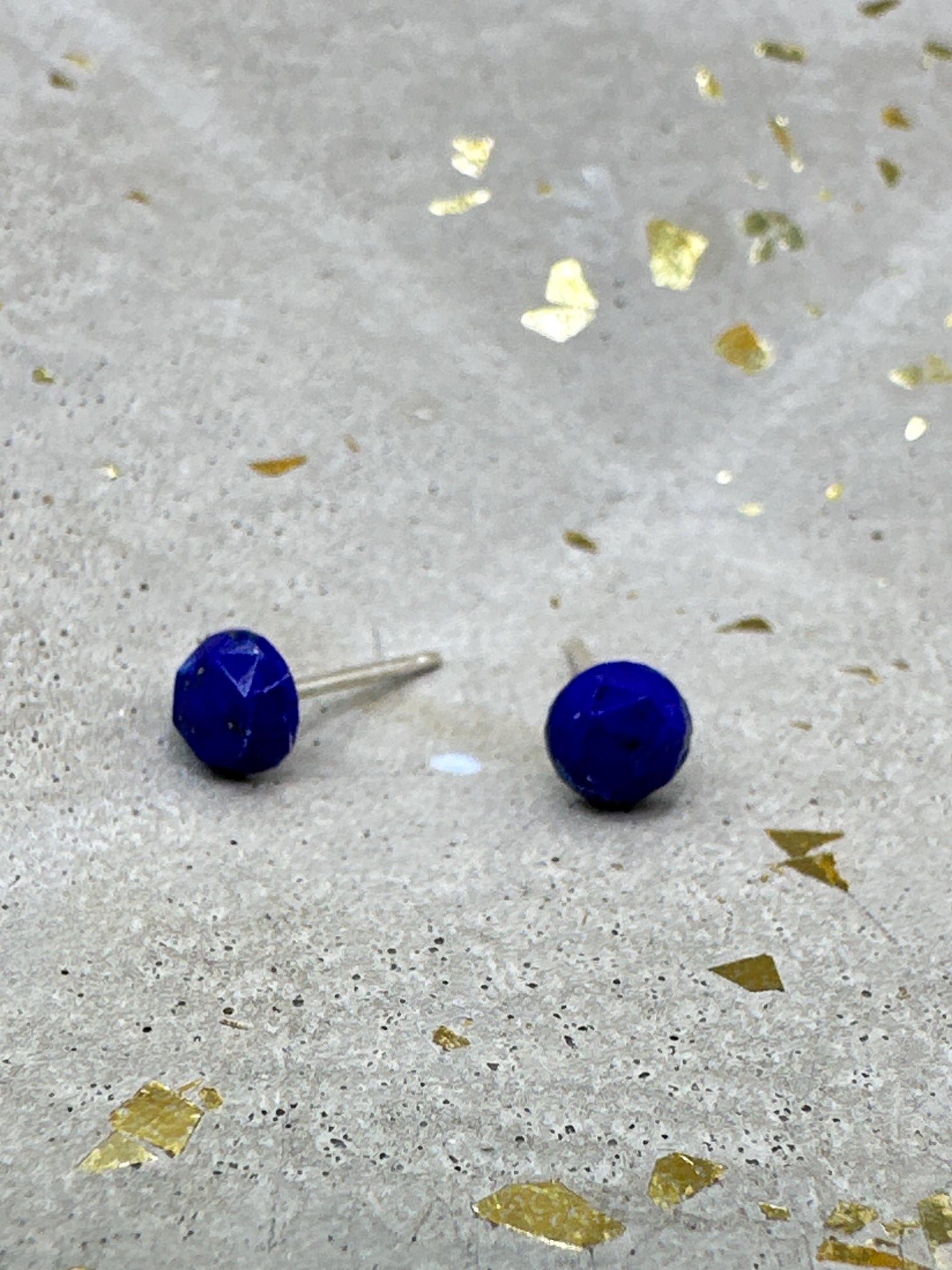 Natural lapis lazuli stud earrings. Bright blue stones 4mm in diameter.