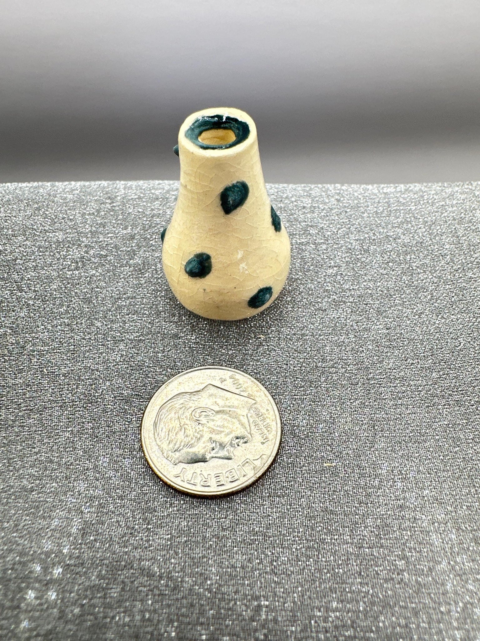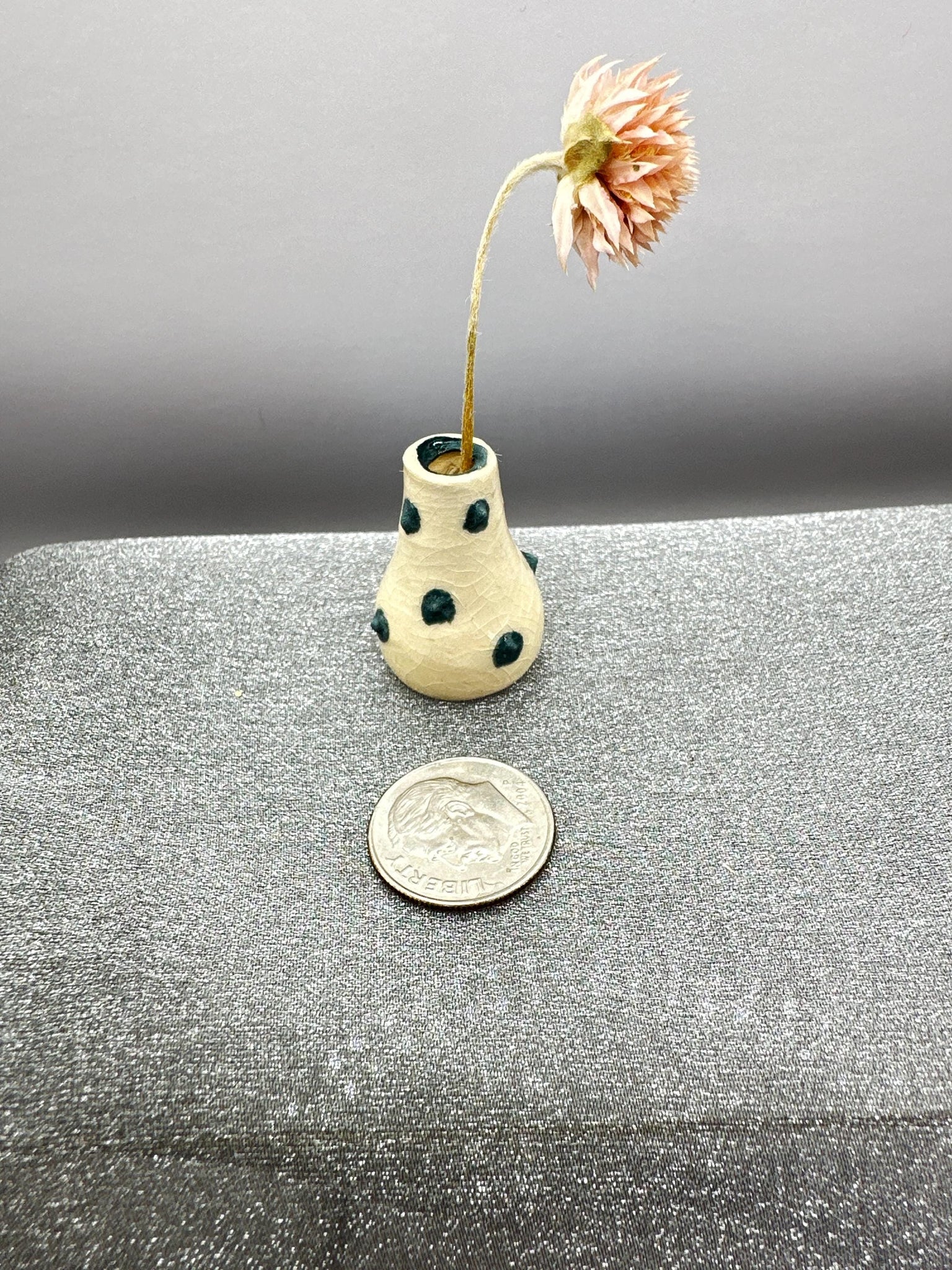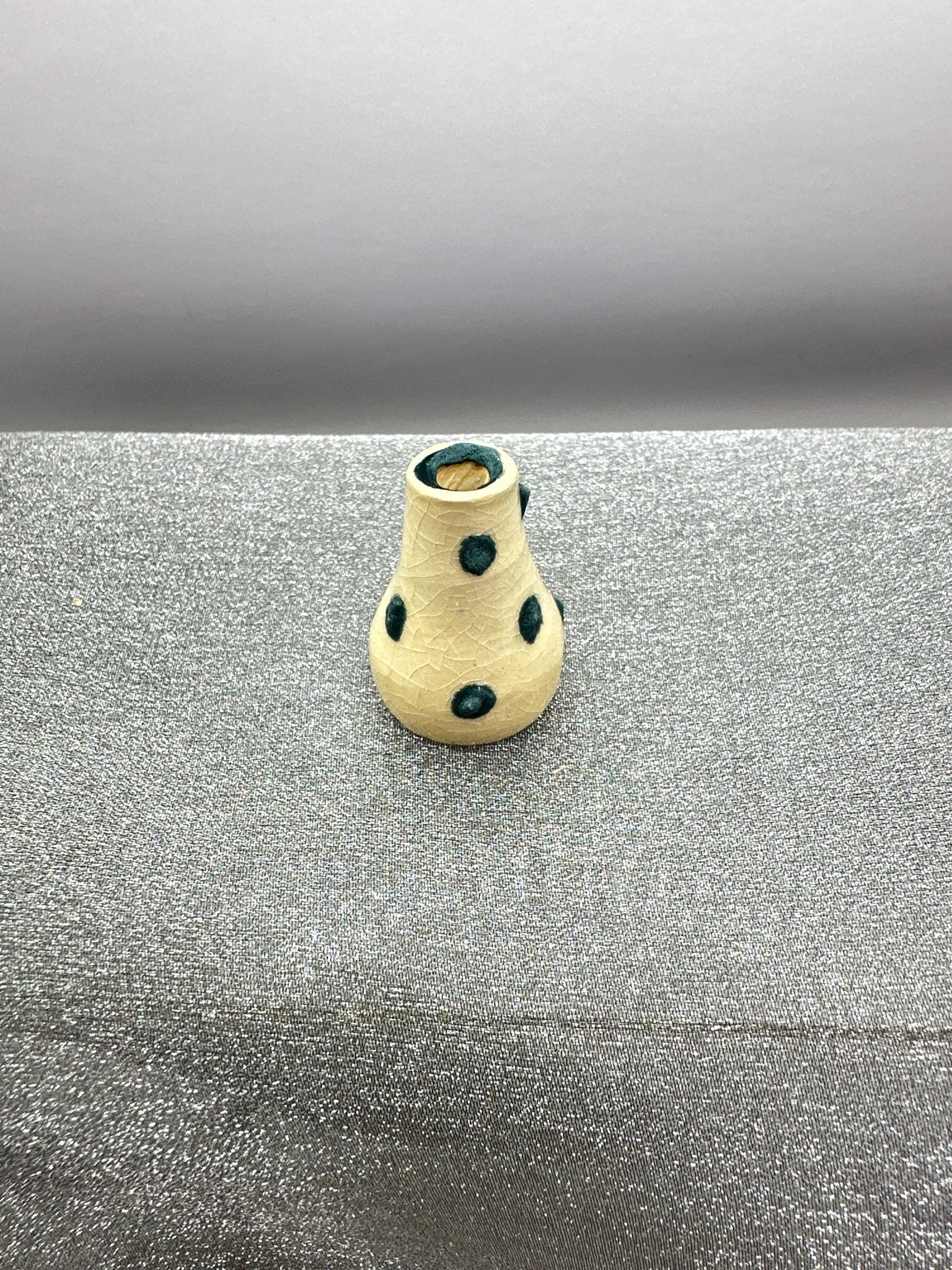 Hand thrown tiny ceramic vase. Smoky blue bumps on clear crackle glaze on white clay. Comes with small dried flower shown. One-of-a-kind. You will receive this exact vase.