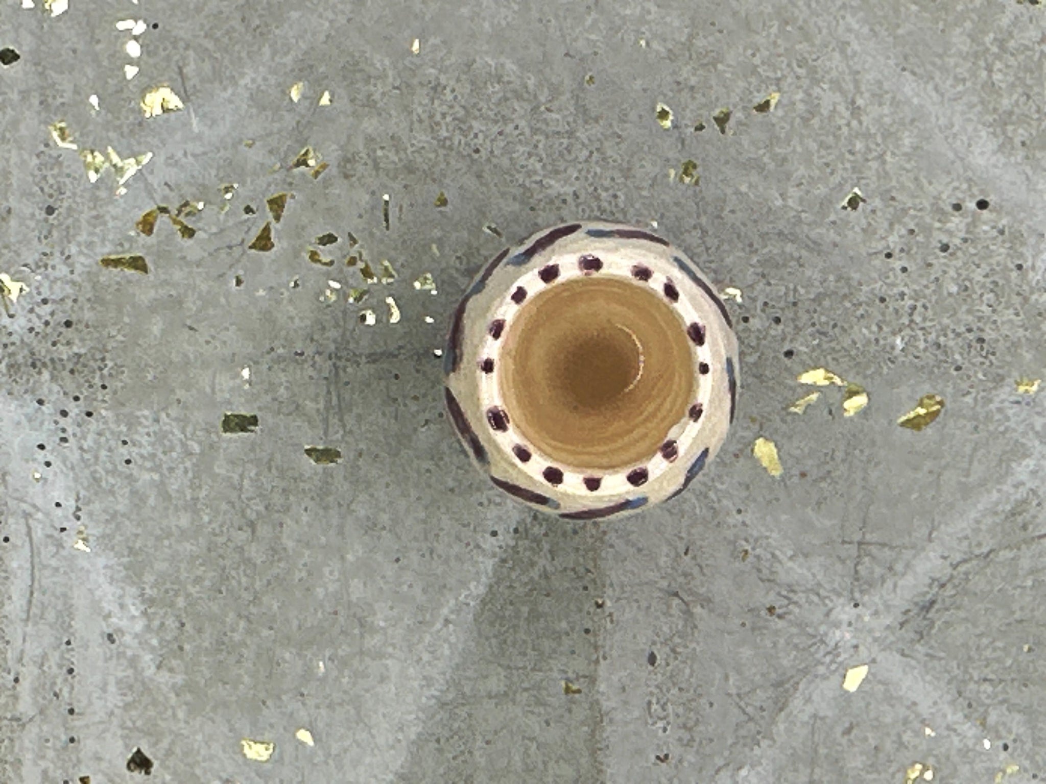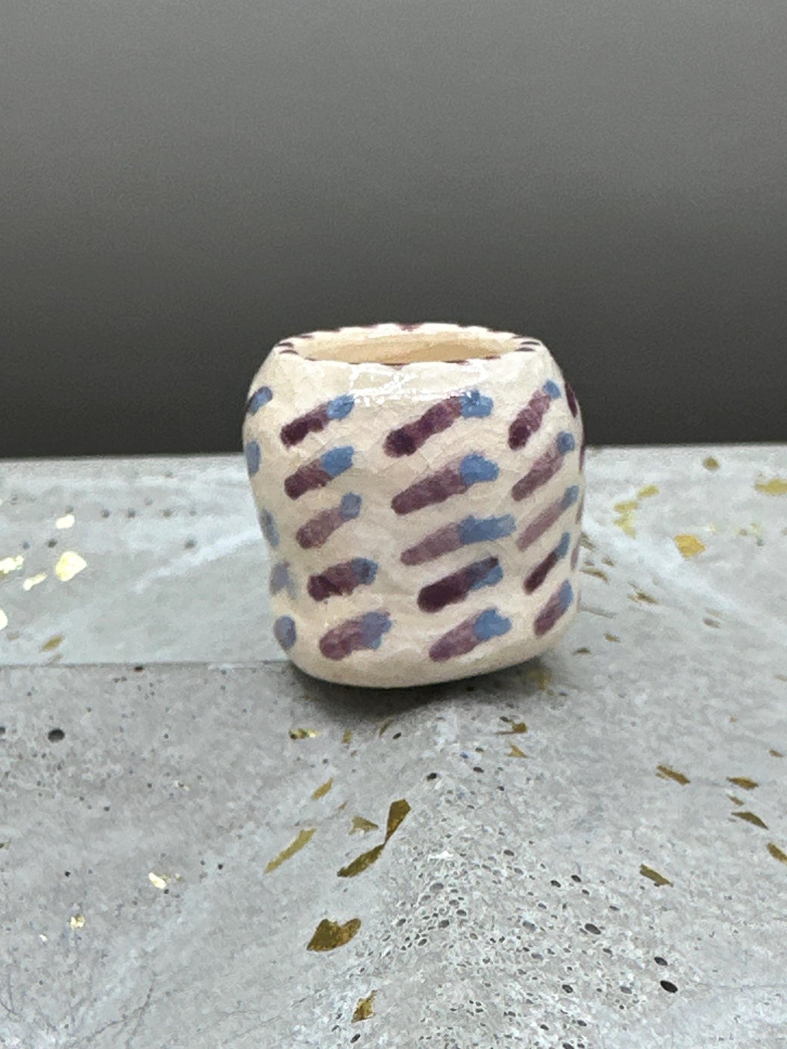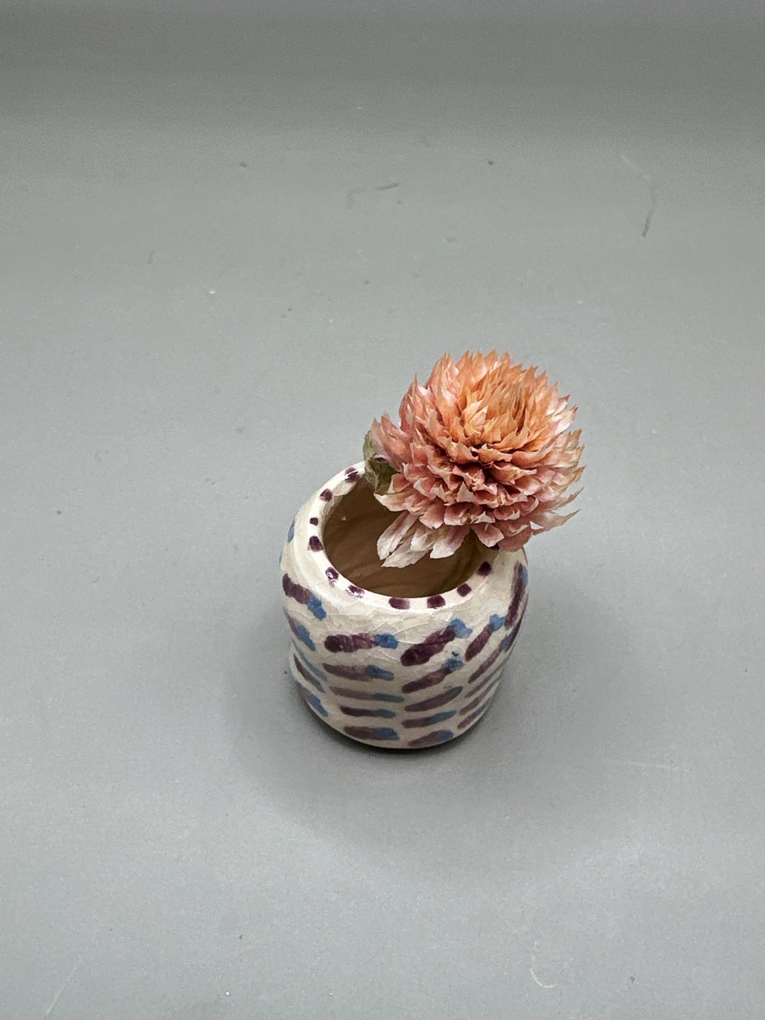 Hand thrown tiny ceramic vase. Blue and purple underglaze and clear glaze on white clay. One-of-a-kind. You will receive this exact vase. You will also receive the dried flower shown.