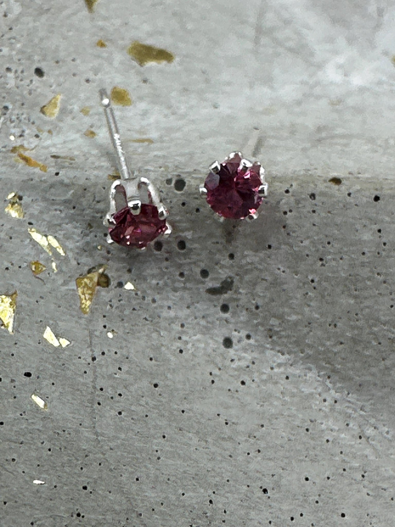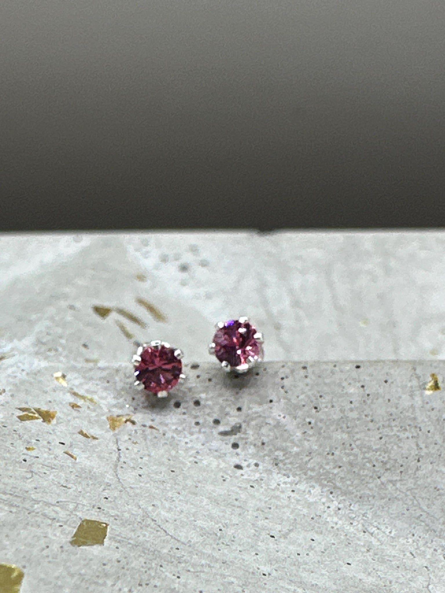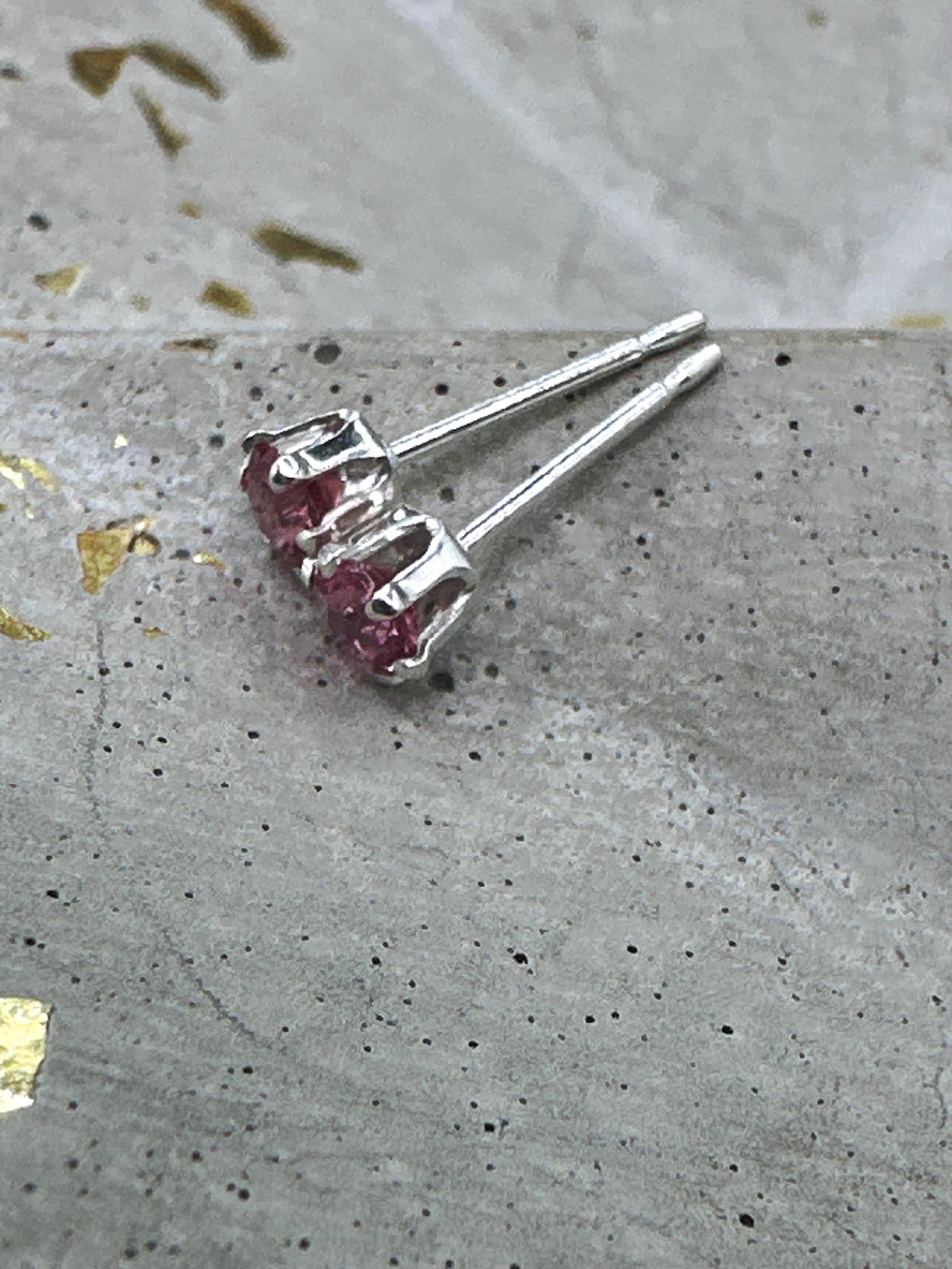 Red spinel stud earrings in silver settings. Gemstones are 3mm in diameter.