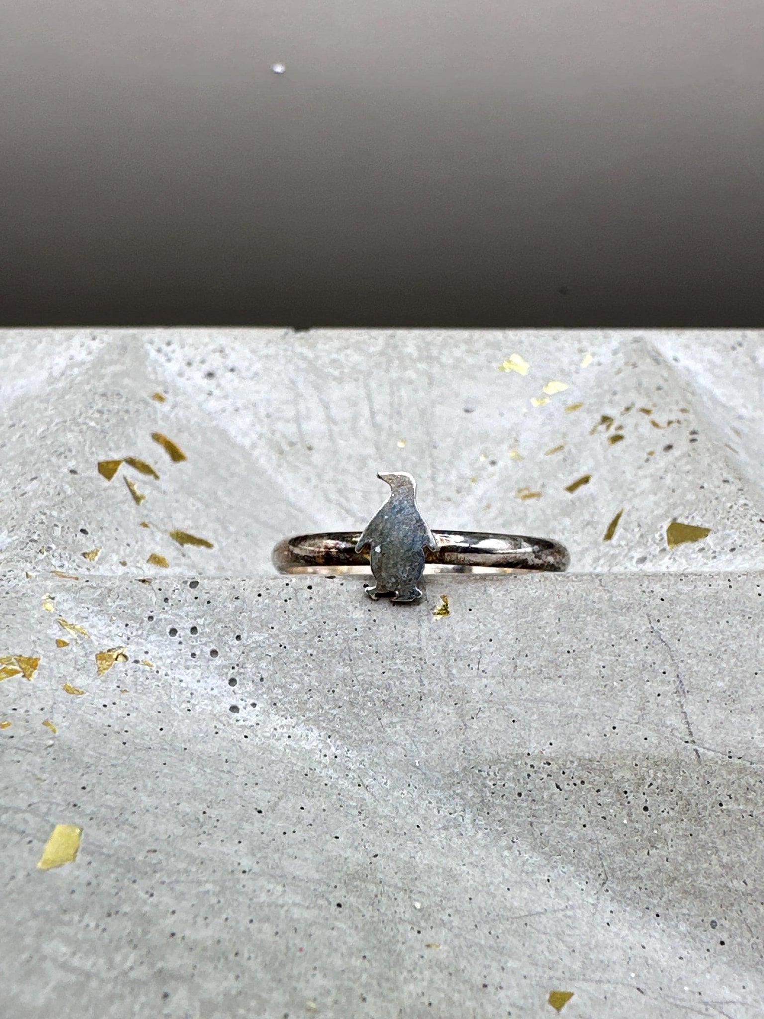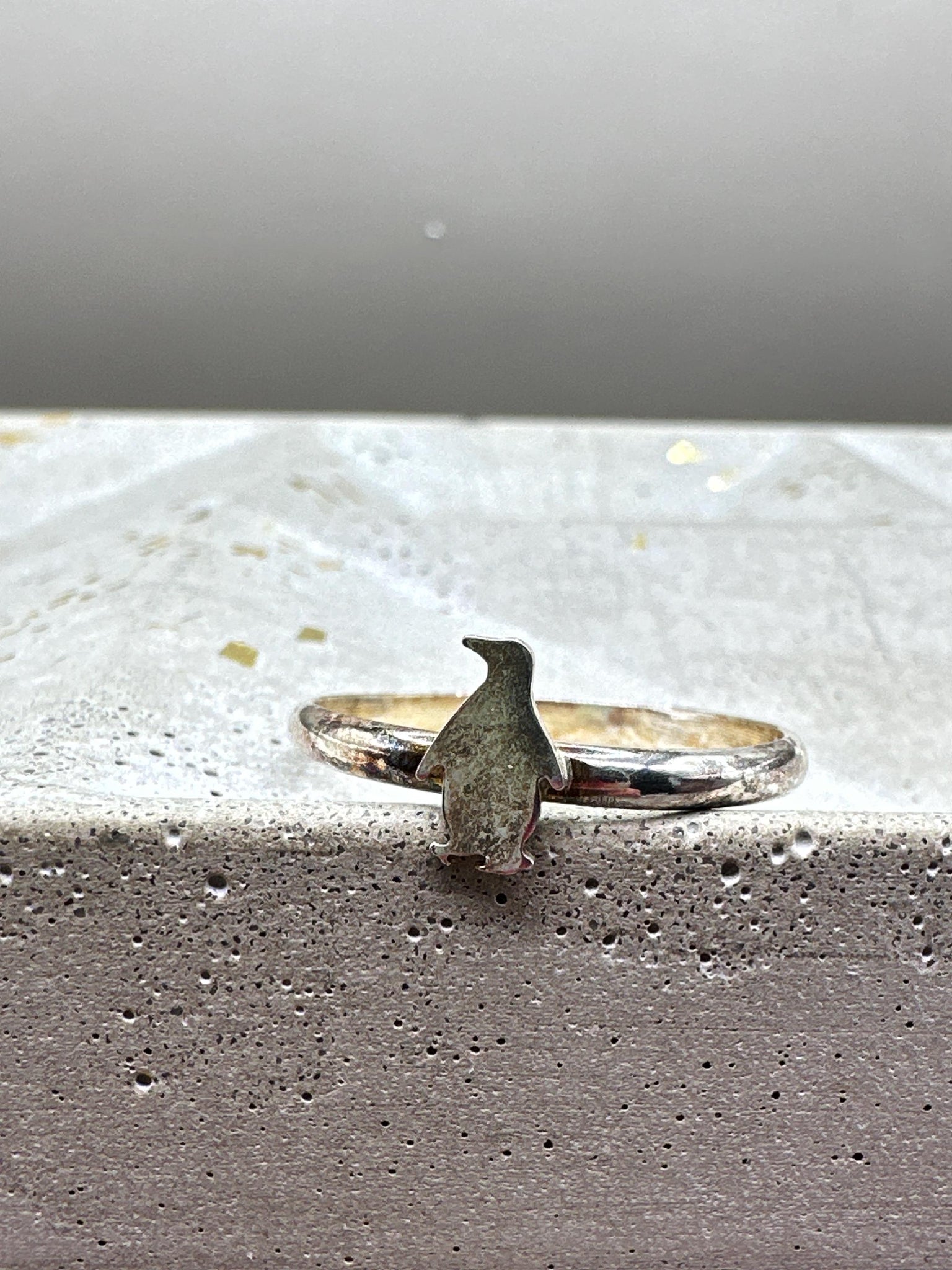 Sterling silver ring with tiny penguin shape.