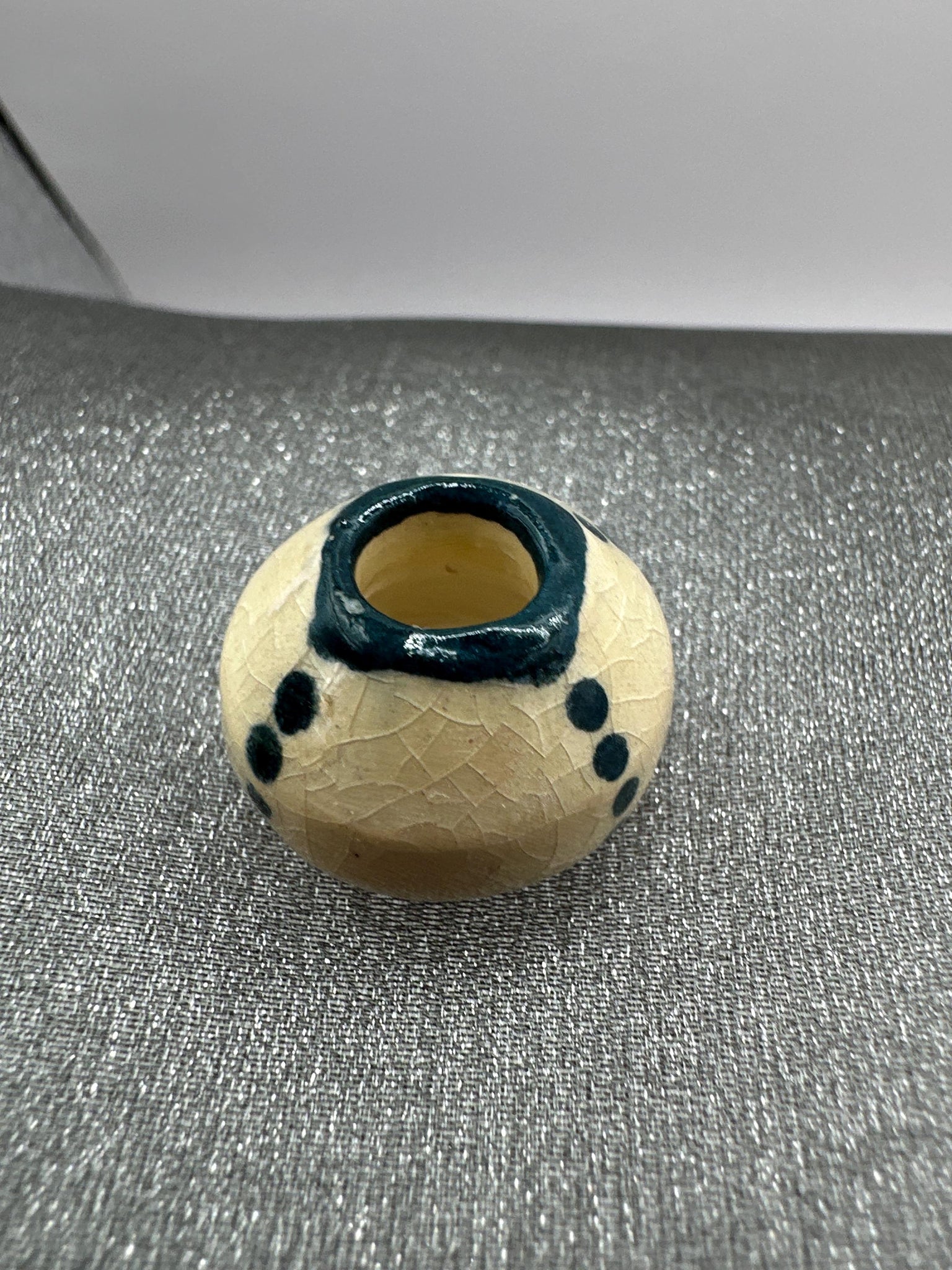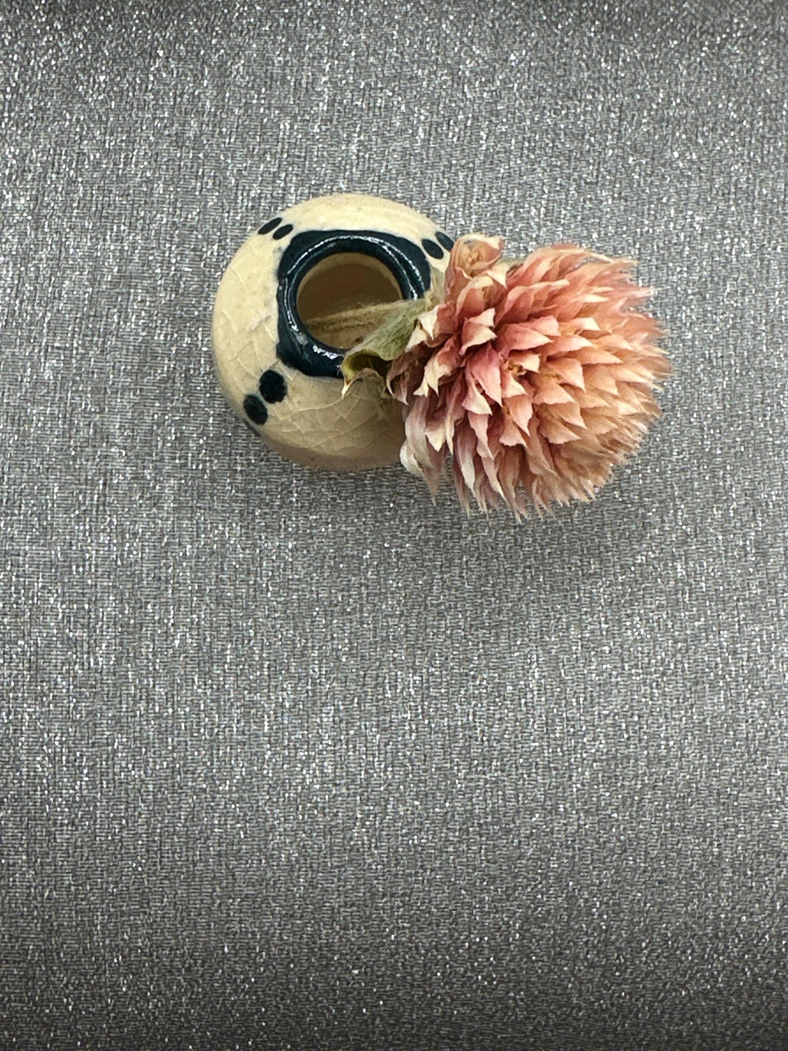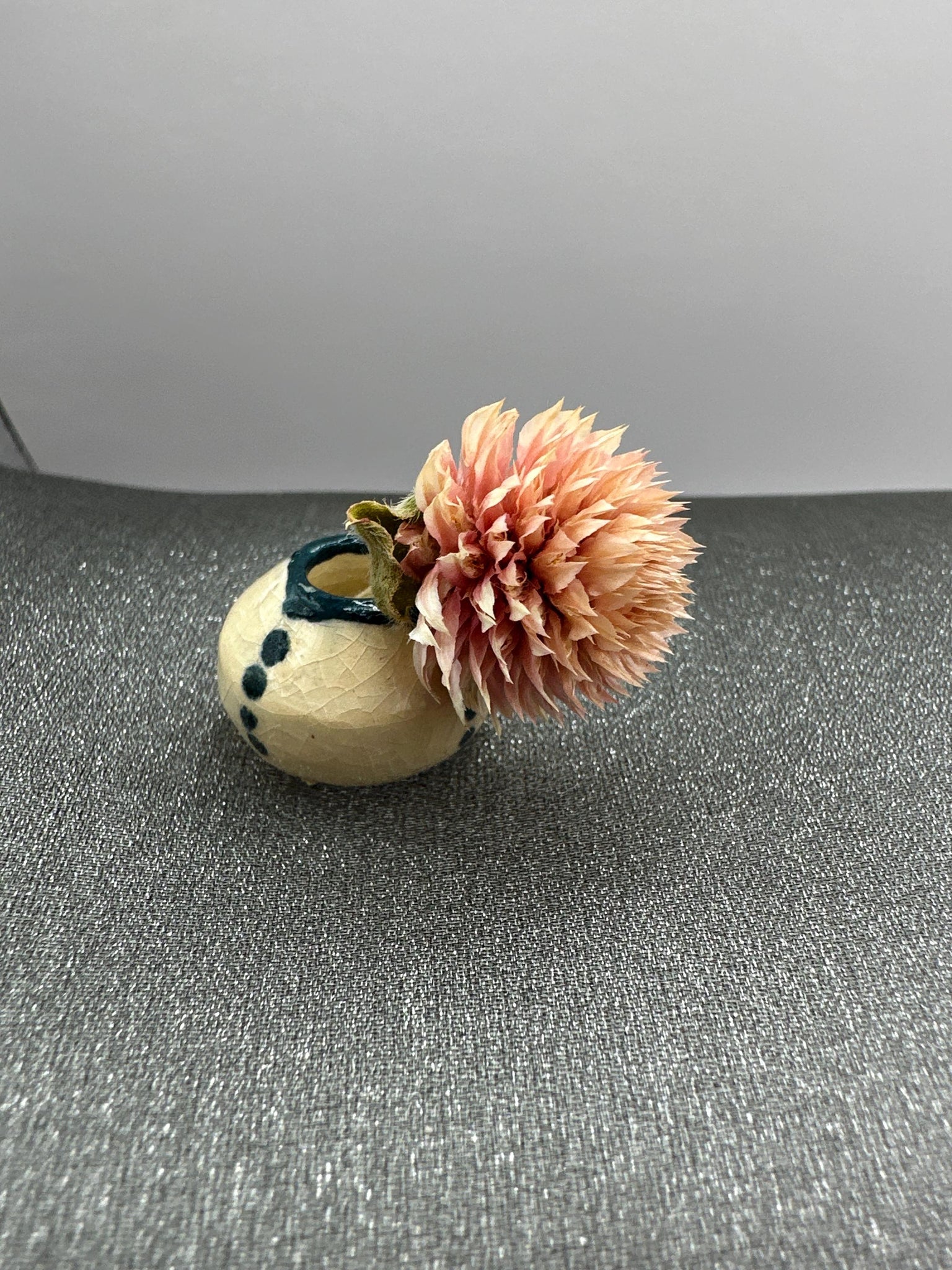 Hand thrown tiny ceramic vase. Hand drawn dark blue underglaze and clear crackle glaze on white clay. Comes with small dried flower shown. One-of-a-kind. You will receive this exact vase.