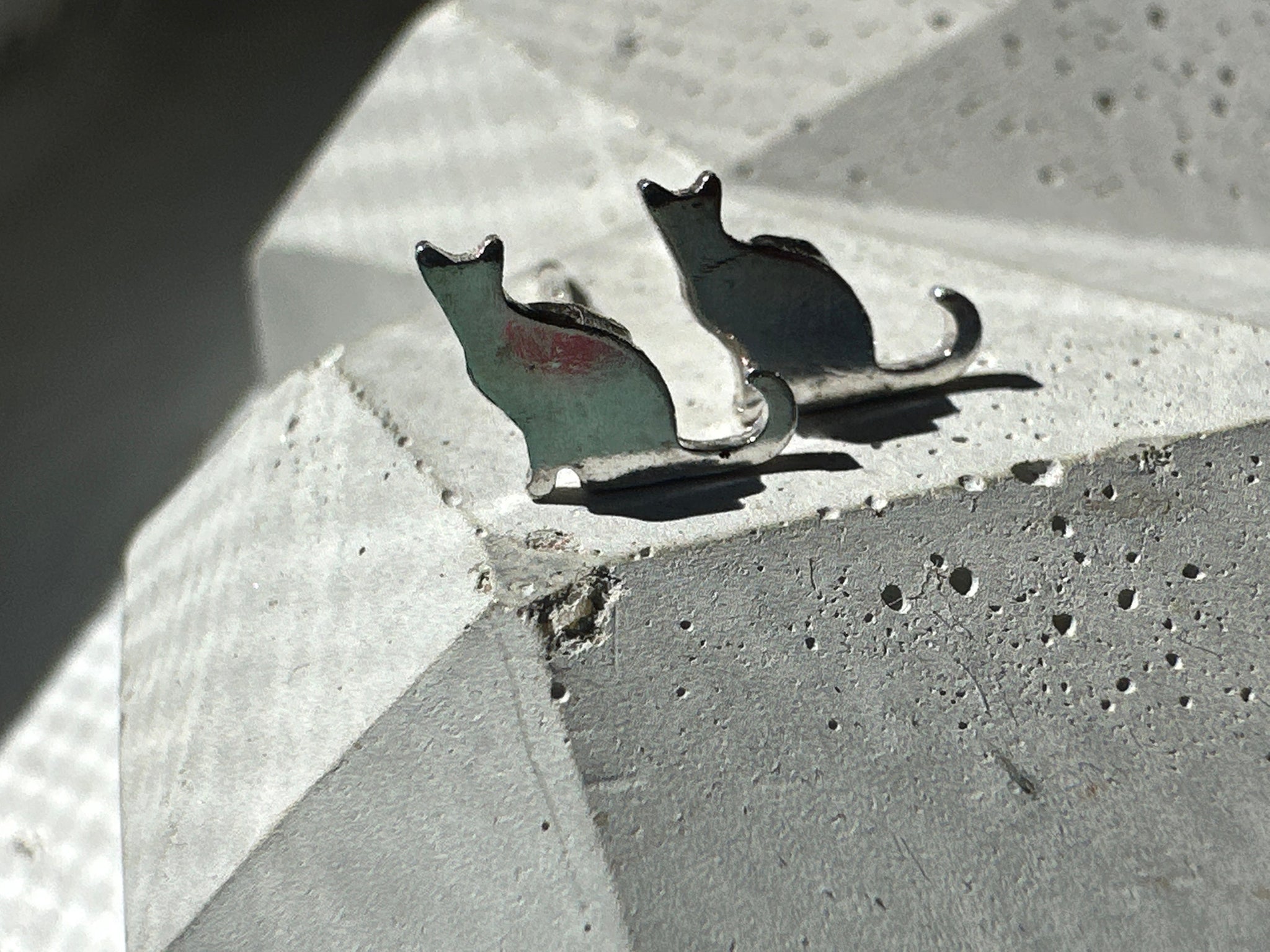 tiny silver cat stud earrings