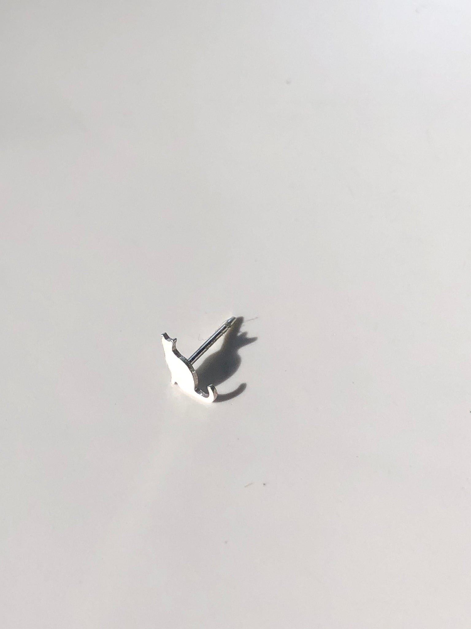 Pair of sterling silver stud earring with very tiny silver cat cutouts. (Pictures only show one earring, but you will receive a pair.)