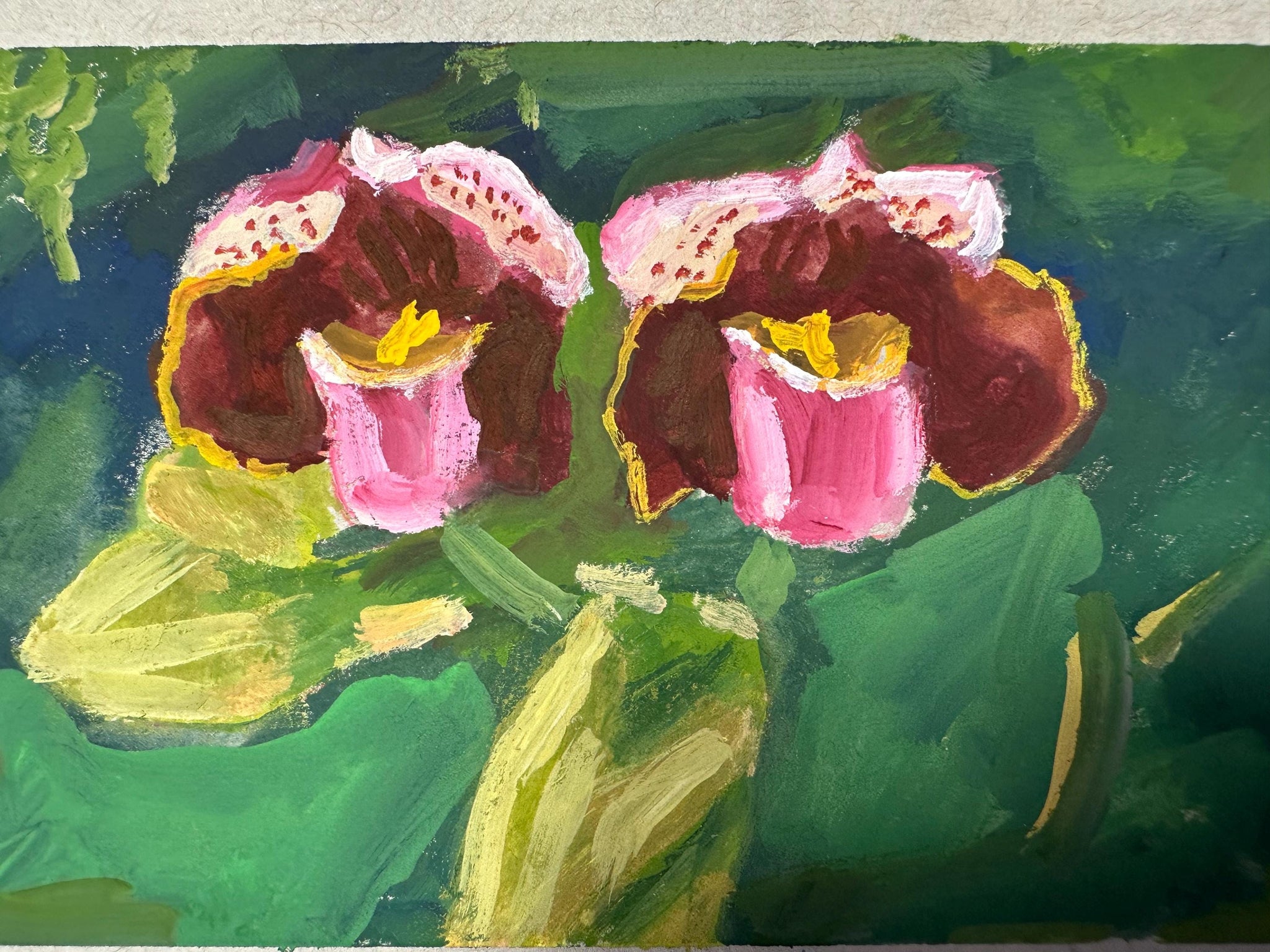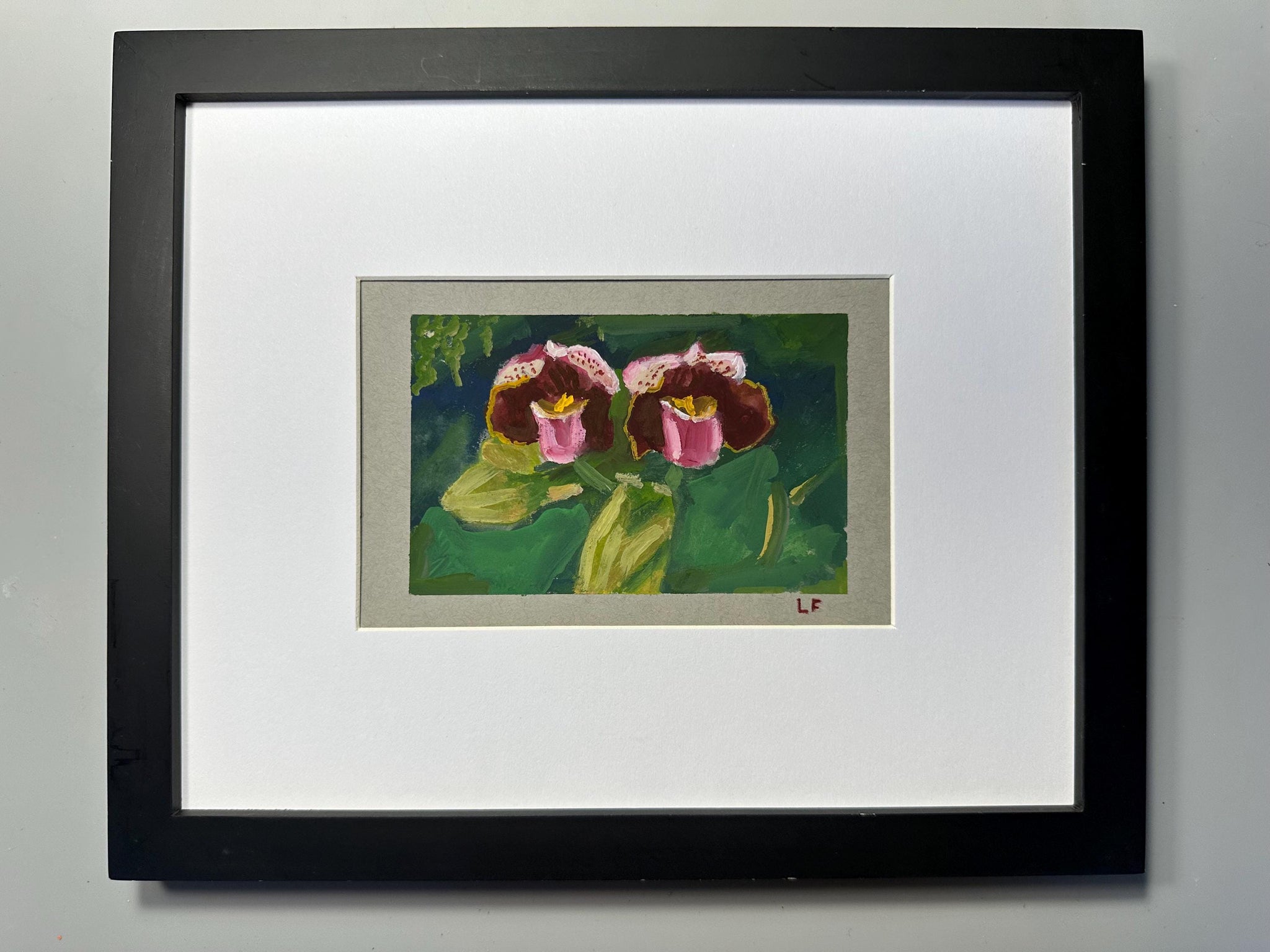 Original abstract painting. Gouache on mixed media paper. White or black wood frame can be included. Size including the frame is 9x12 inches. Image size is 3x4.75 inches.